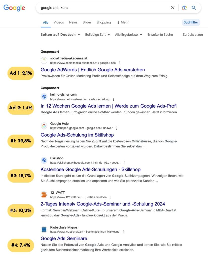 Wie sind die CTRs auf den Google-Suchergebnisseiten?