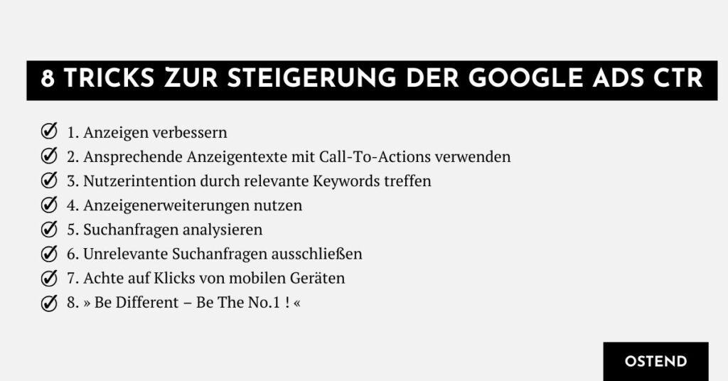 Ein Überblick über die 8 Tricks zur Steigerung der Google Ads CTR