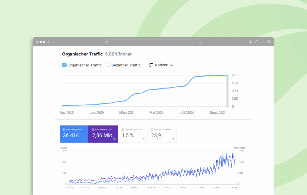 Auch heute begleiten wir Greenox weiterhin im Rahmen einer fortlaufenden strategischen SEO-Betreuung – mit Fokus auf nachhaltigem Backlinkaufbau und der kontinuierlichen Stärkung der digitalen Sichtbarkeit.