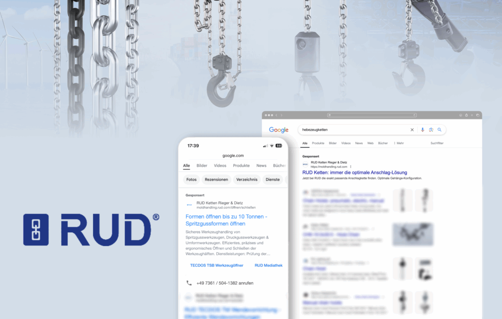 Gerade im Industriebereich zählt Präzision – nicht nur bei Produkten, sondern auch im Marketing. Für RUD Hoist Chains haben wir eine maßgeschneiderte Google Ads Strategie entwickelt, die sich auf hochrelevante Keywords und eine klar definierte technische Zielgruppe konzentriert. Statt breiter Streuung ging es darum, exakt die Fachleute zu erreichen, die aktiv nach Lösungen im Bereich Hebetechnik und Lastaufnahmemittel suchen.