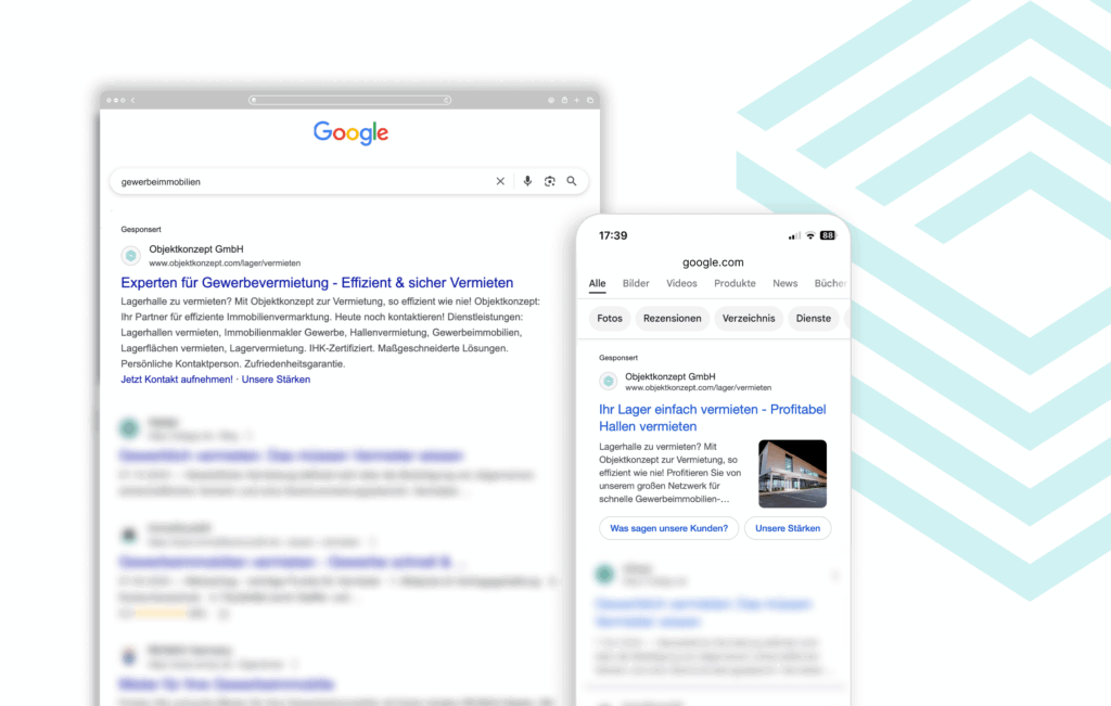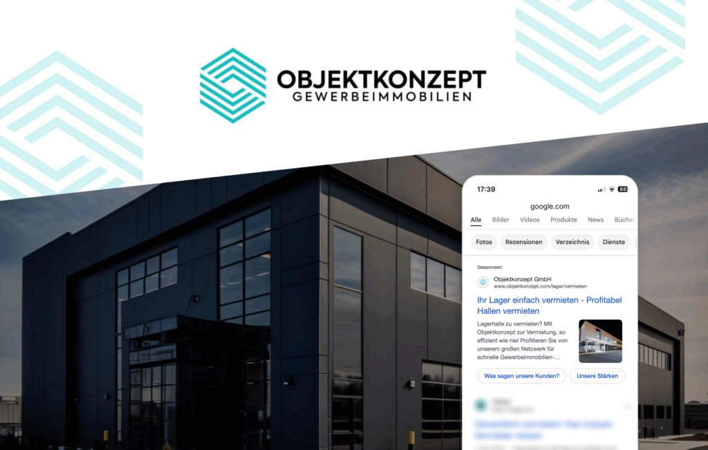 Um die digitalen Ziele von Objektkonzept zu erreichen, setzten wir auf zwei zentrale Hebel: Wir richteten sauberes, datenschutzkonformes Webtracking ein, das wichtige Nutzerinteraktionen präzise abbildet und das digitale Verhalten potenzieller Kunden sichtbar macht. Dadurch konnten wir datengetriebene Google Ads Kampagnen entwickeln, die potenzielle Interessenten genau dort abholen, wo sie aktiv nach Immobilienangeboten suchen.
