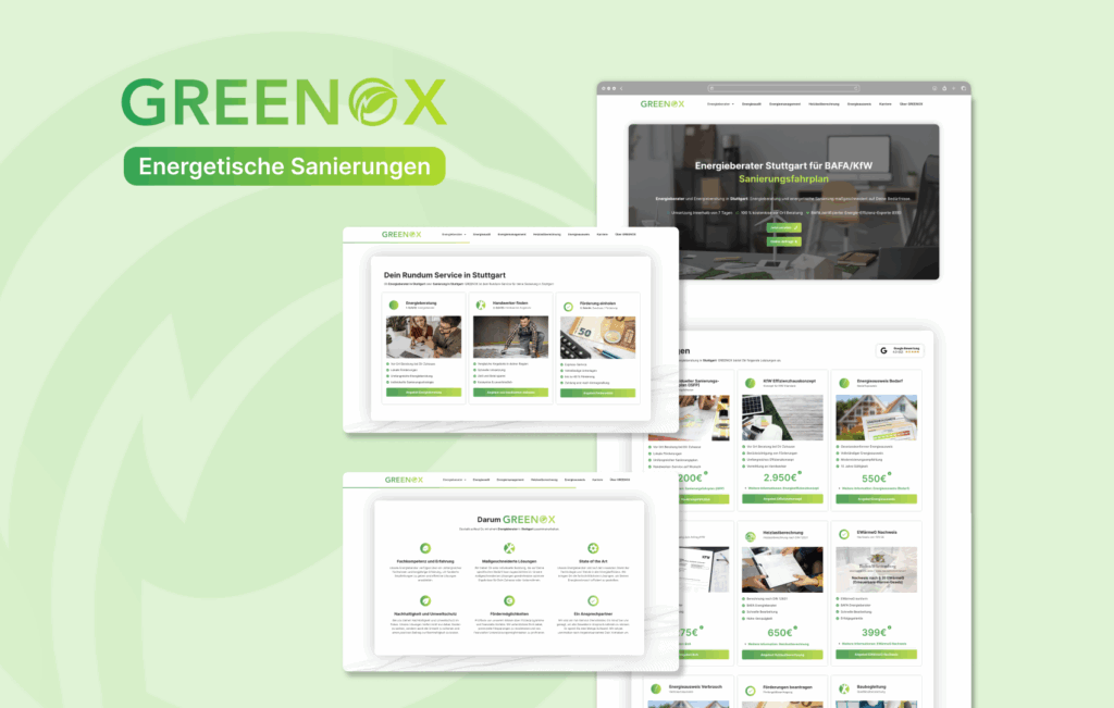 Um Greenox als führenden Anbieter für Energieberatung in Stuttgart zu positionieren, wurde eine Website mit umfassender SEO-Strategie umgesetzt – mit messbarem Erfolg.