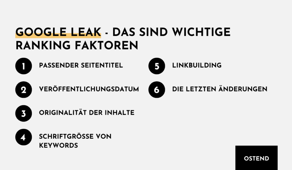 Doch was sind nun die geleakten Google Ranking Faktoren und wie beeinflussen diese das Ranking? Im folgenden Abschnitt dieses Blogbeitrags erfährst Du mehr darüber: