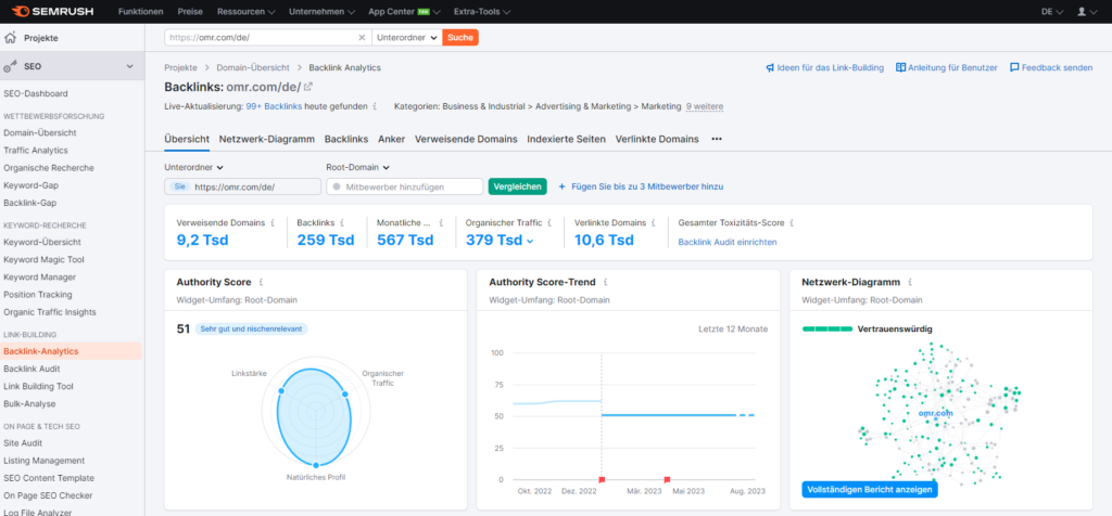 Wie immer im Onlinemarketing darf die fortlaufende Überwachung von Backlinks nicht vergessen werden. Fortgeschrittene Tools können Dir dabei helfen, Änderungen im Linkprofil zu erkennen, neue Chancen zu identifizieren und die Wirksamkeit Deiner Linkbuilding-Bemühungen zu bewerten.