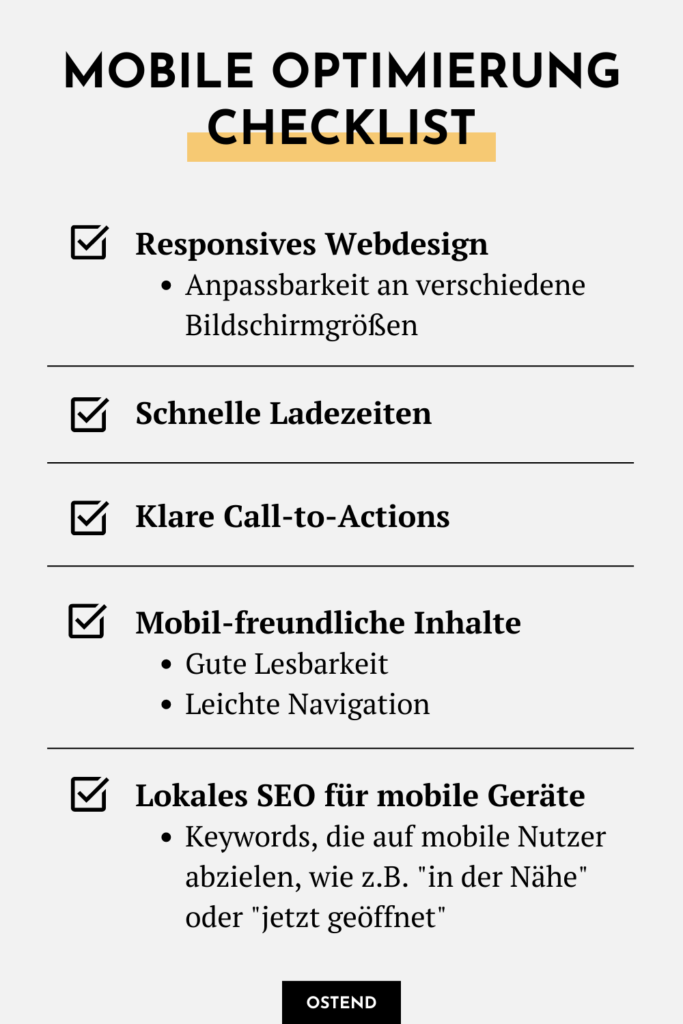 Aber wie optimierst Du Deine Website für Mobilgeräte? Hier ist eine Checklist mit den wichtigsten Punkten: