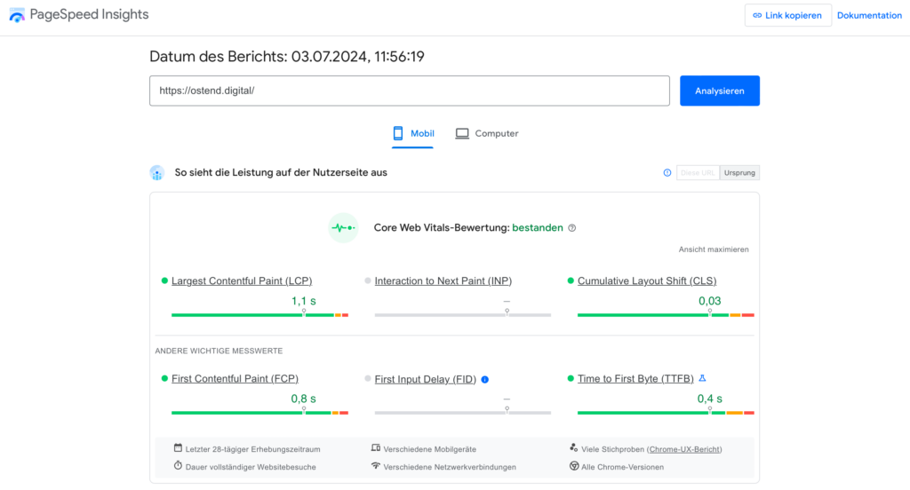 Schnelle Ladezeiten sind entscheidend für eine gute Benutzererfahrung und ein hohes Ranking in den Suchergebnissen. Nutze Tools wie Google PageSpeed Insights, um die Geschwindigkeit Deiner Website zu testen und Optimierungsmöglichkeiten zu finden.