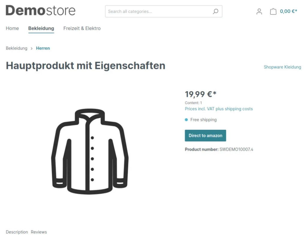 Anstatt ein Produkt zum Warenkorb hinzuzufügen, kannst Du mithilfe dieses Plugins einen externen Link einstellen, der zum Beispiel zu einem Influencer oder direkt in den Shop des Werbetreibenden führt (in der folgenden Abbildung: amazon), damit Kunden dort ihre Bestellung abschließen können.