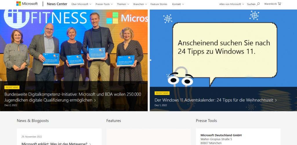 Ebenso nutzt es Microsoft News für seine Webseite WordPress.